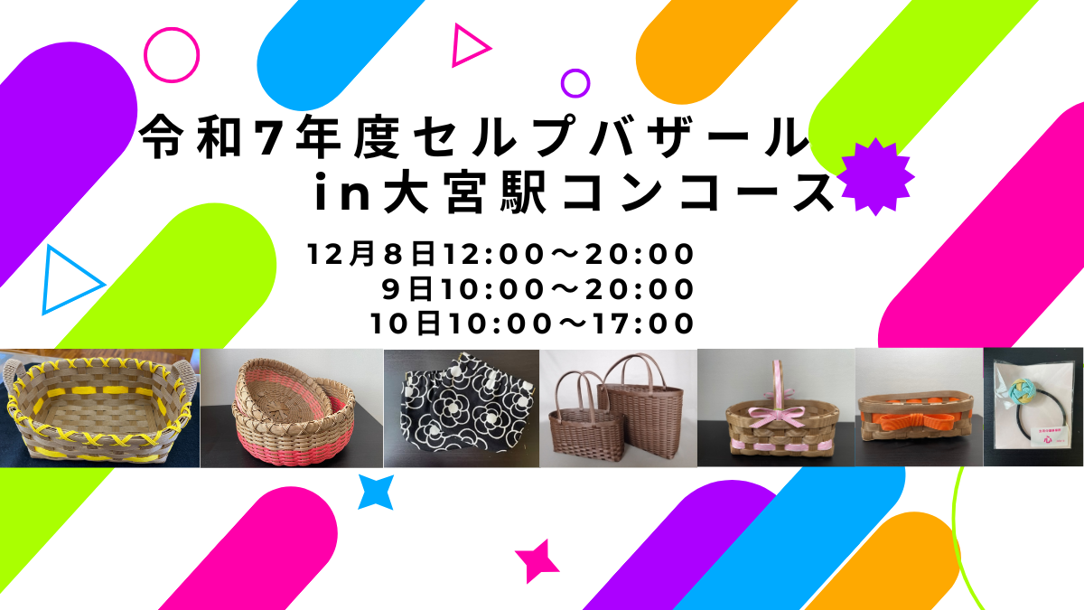 『令和7年度セルプバザールin大宮駅コンコース』参加のお知らせ イベントお知らせ 2025.11.06 令和7年度セルプバザールin大宮駅コンコースに参加します🌈🌟日程:令和7年12月8日12:00~20:00 12月9日10:00~20:00 12月10日10:00~17:00🌟場所:大宮駅コンコース中央通路(駅構内)みなさんのご来場お待ちしております🥰
